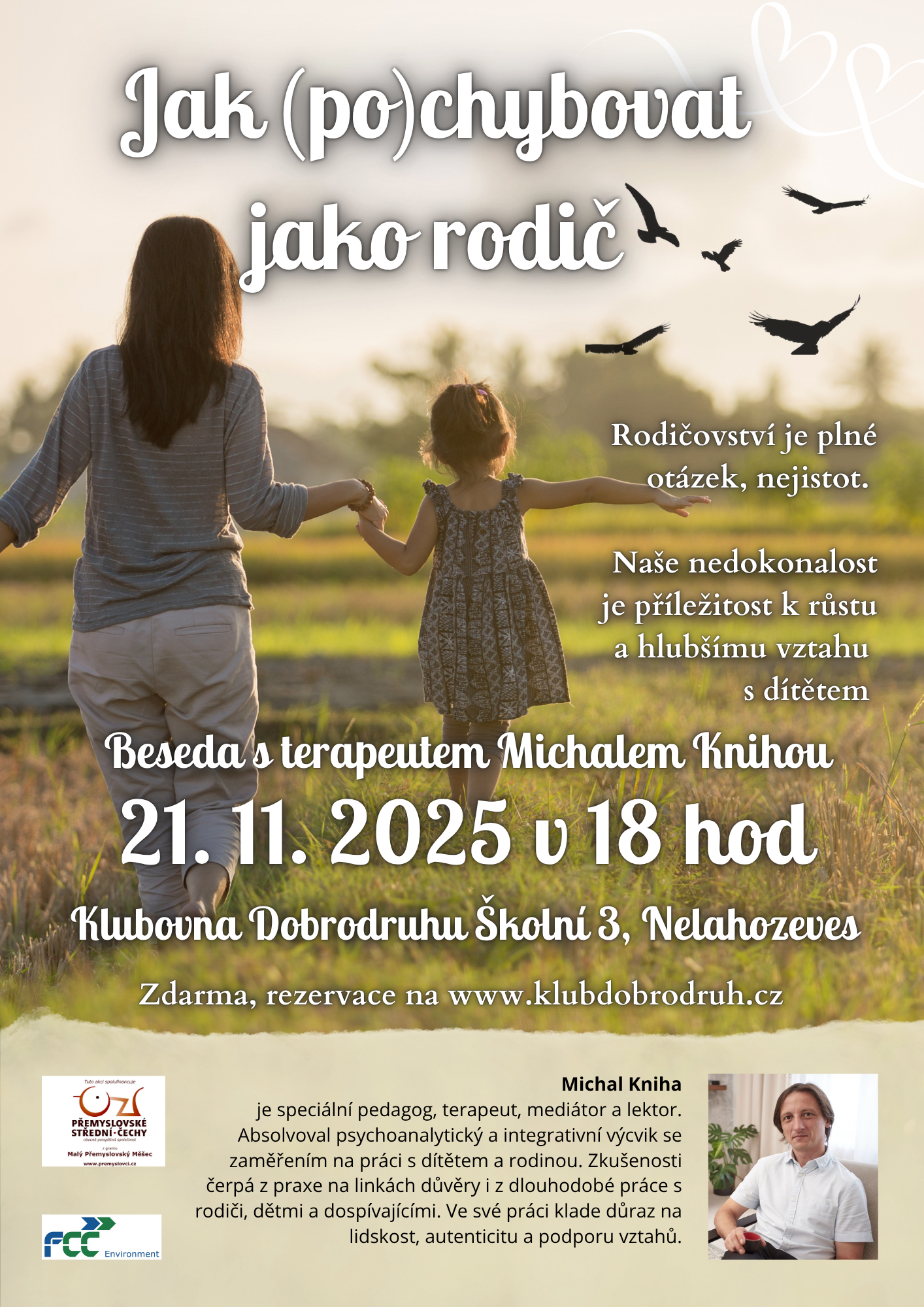 Vstupné 100 Kč, děti do 3 let zdarma. Vstupenky k zakoupení na místě. - 21. 11. – Beseda: Jak (po)chybovat jako rodič