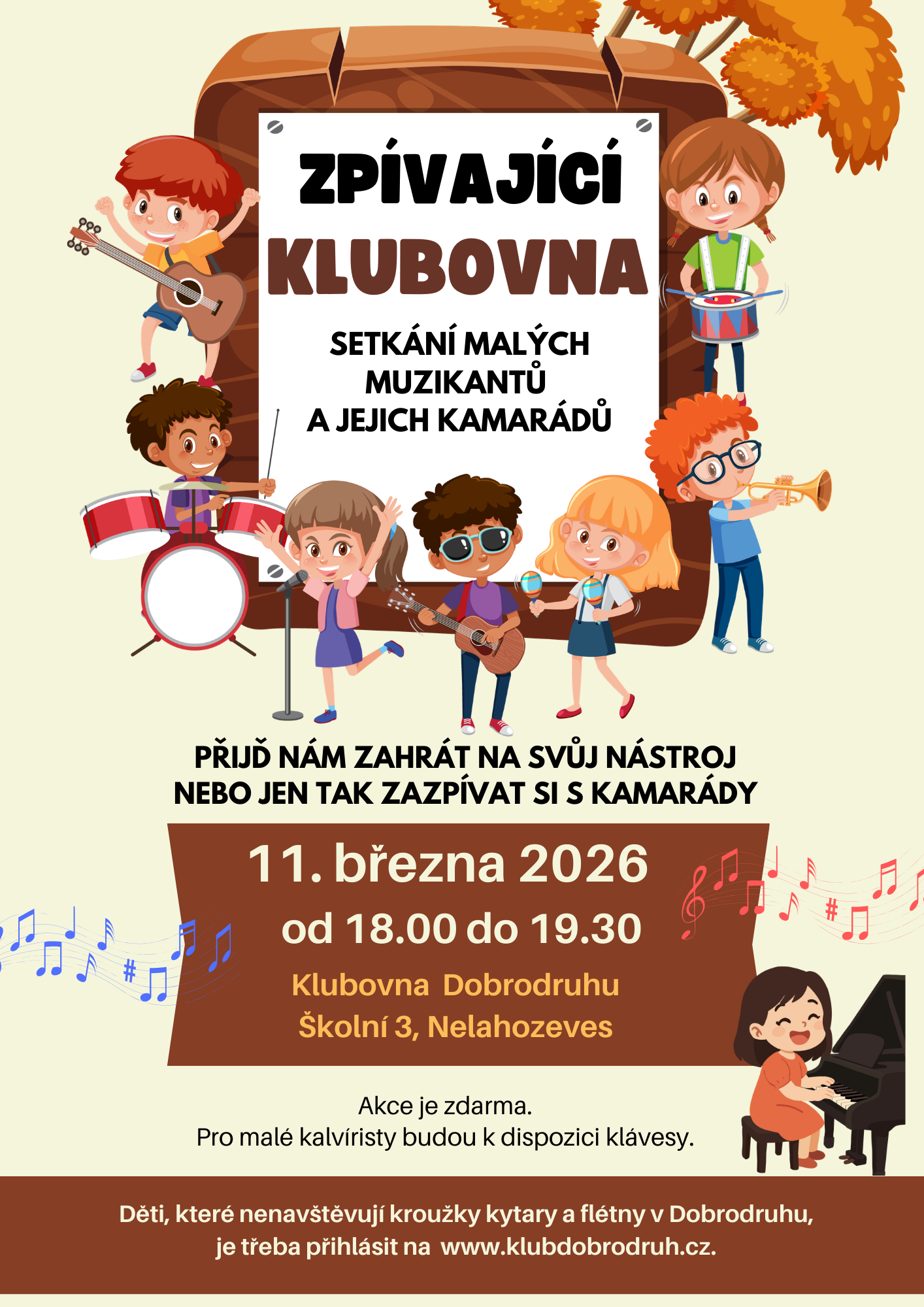 Děti, které nenavštěvují kroužky kytary a flétny v Dobrodruhu, je potřeba přihlásit na